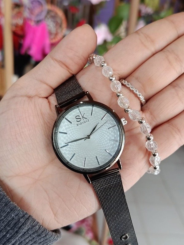 Reloj malla metalica, Acero quirurgico. + Pulsera.